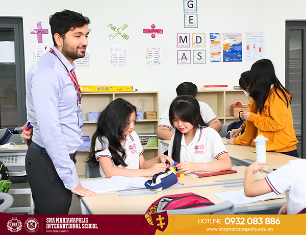 As Mr. Onur teaches all grades of Middle School, his ultimate objective is to prepare students for advanced level Math in High School. To do this, he tries to cover as many crucial Algebra skills for Grade 8 students as possible since they will go on to take Algebra 1, followed by Algebra 2, in Grade 9. His Grade 8 curriculum is thus closely aligned with that of Grade 9 to familiarize students and minimize the risk of their failure. This tactic, called vertical alignment, is extensively adopted in the curricula across different grades at SNA Marianapolis and has proved to help students deepen their learning by building on foundational prior knowledge.